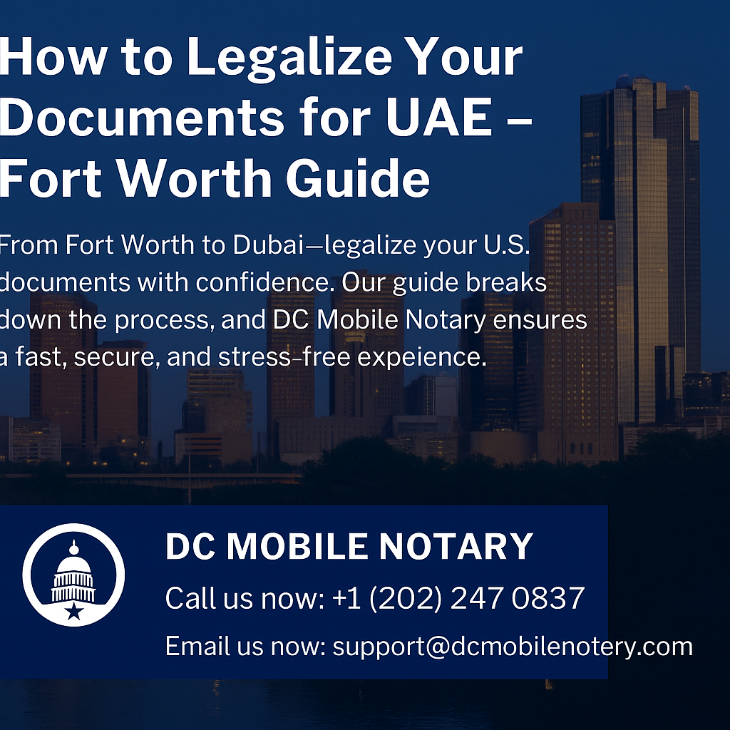 Legalizing your documents for the UAE doesn’t have to be complicated. With DC Mobile Notary, Fort Worth residents can rely on expert help every step of the way — ensuring fast ,accurate, and compliant processing for all documents.