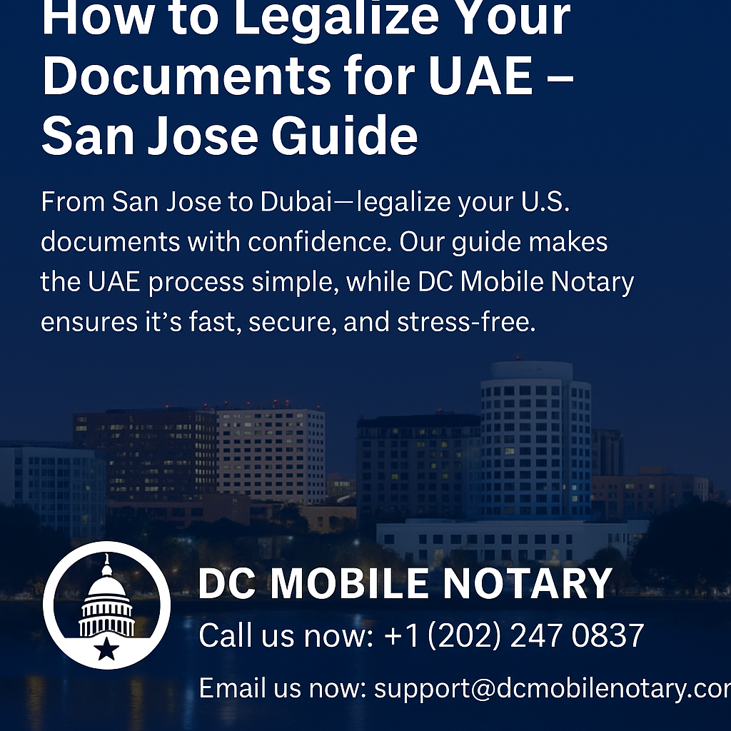 We are based in Washington, DC — right next to the U.S. Department of State and the embassies, which means your documents are handled at the source. This ensures faster processing, secure handling, and fewer delays compared to mailing them elsewhere. Whether you ship your documents from anywhere in the U.S. or visit us in person, our team will take care of the entire embassy legalization process quickly and hassle-free. 👉Click here https://www.dcmobilenotary.com/countries/uae-legalization-apostille to get started or contact us at 202-247-0837 | support@dcmobilenotary.com.
